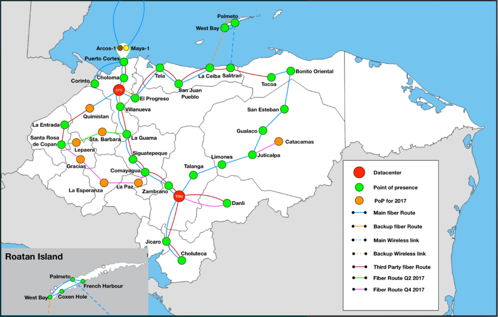 cable providers serve the country, providing Honduras with over 99% redundancy and